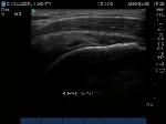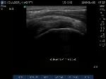"Cartilage Interface Sign" the hyperechoic rim over the hypoechoic articular cartilage is not usually seen unless a fluid layer is between the tendon and cartilage surface. When the tendon is resting normally over cartilage the interface is only hypoechoic.