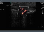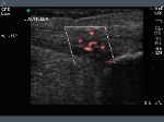 Achilles Tendon: Power Doppler shows enthesitis of the Achilles to the Calcaneus.
