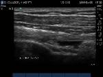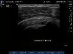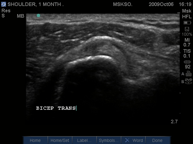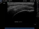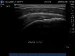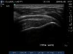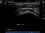Anterior movement of the probe from the prior image shows beginning of cortical irregularities seen at the lateral Greater Tuberosity