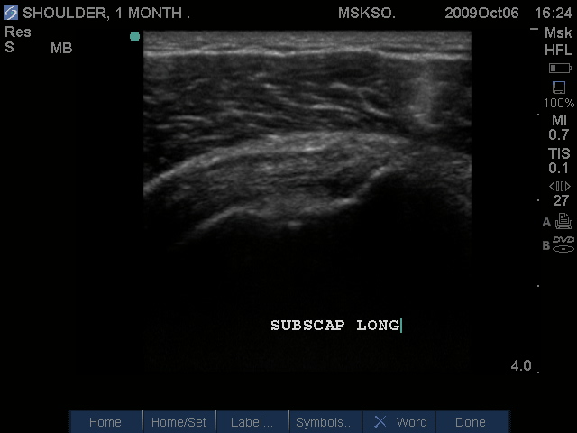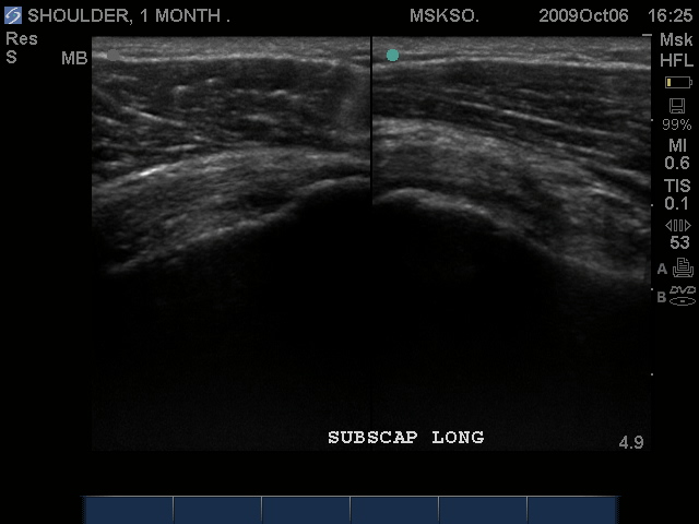 Long axis (left) and Transverse (right) images of Subscapularis Tear