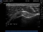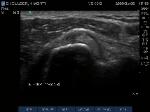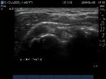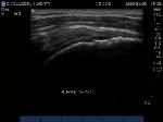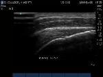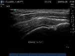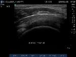 "Cartilage Interface Sign" the hyperechoic rim over the hypoechoic articular cartilage is not usually seen unless a fluid layer is between the tendon and cartilage surface. When the tendon is resting normally over cartilage the interface is only hypoechoic.