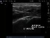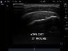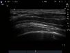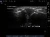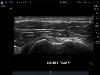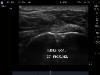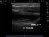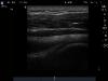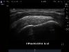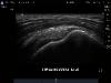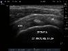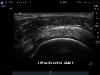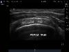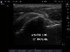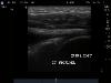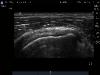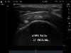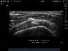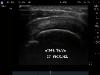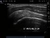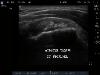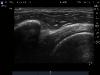 Distal Supraspinatus at its insertion, note the hypoechoic rim above the cortex is absent, image is now over the Greater Tuberocity. The defect in the tendon on this image is at the anterior margin of the tendon at the border of the biceps tendon.